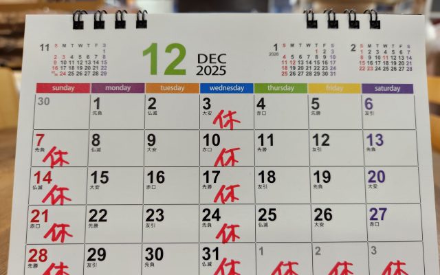 12月休業日のお知らせです。 12月も水曜・日曜が休業日です。 休業日でも店内にスタッフ在店してますのでご来店ご予約頂けますと応対出来ます。また、ご訪問(クリーニング・打ち直しリフォーム・貸し布団等)いつでも可能です。 ...続きを読む(2025年12月01日)