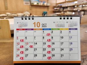 10月も水曜・日曜・祝日が休業日です。